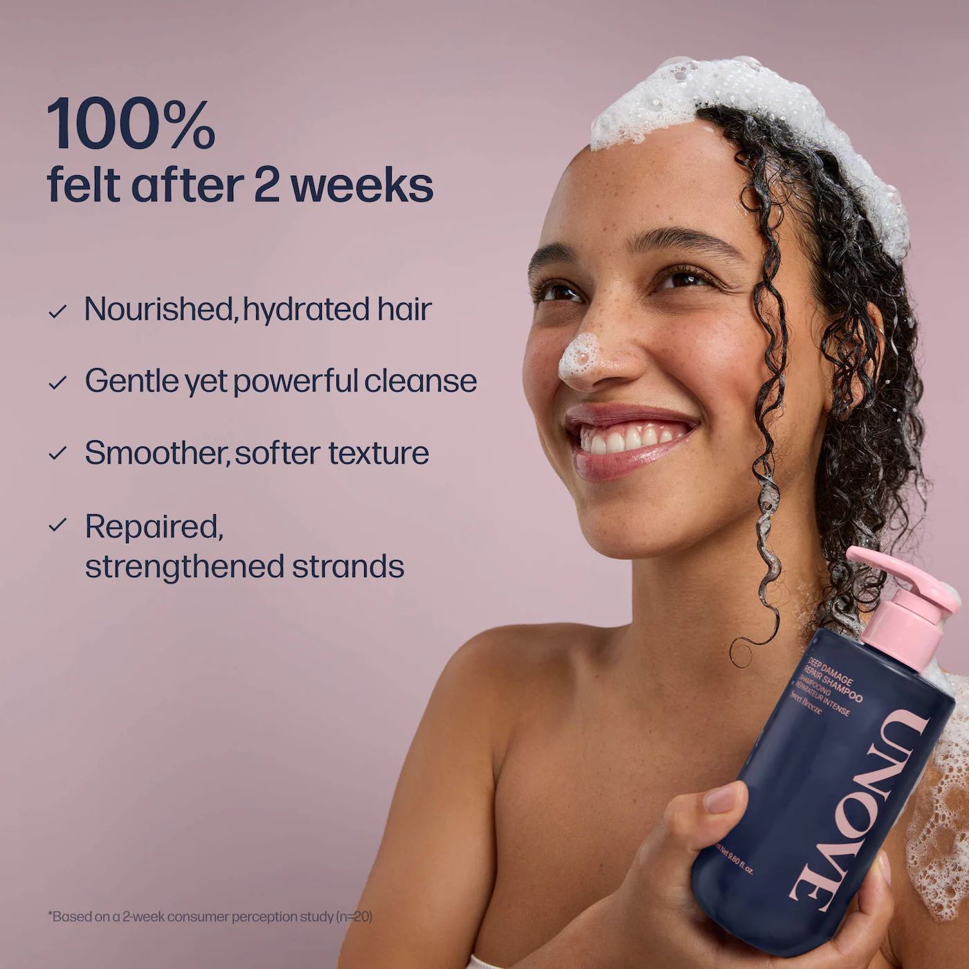 Qué es: Un shampoo hidratante que cuida y fortalece las hebras dañadas mientras limpia suavemente el cuero cabelludo.