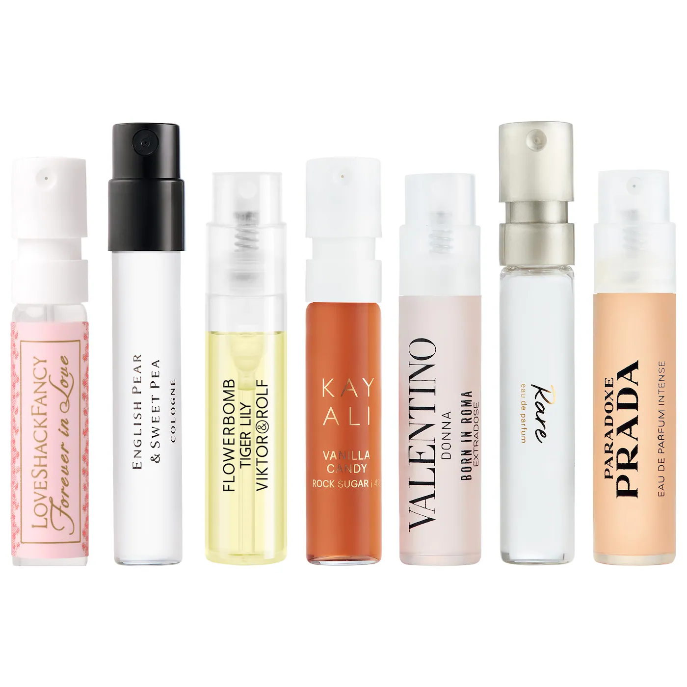 Qué es: Incluye siete fragancias en tamaño de muestra + certificado para canjearlo por tu fragancia favorita sin costo adicional.
