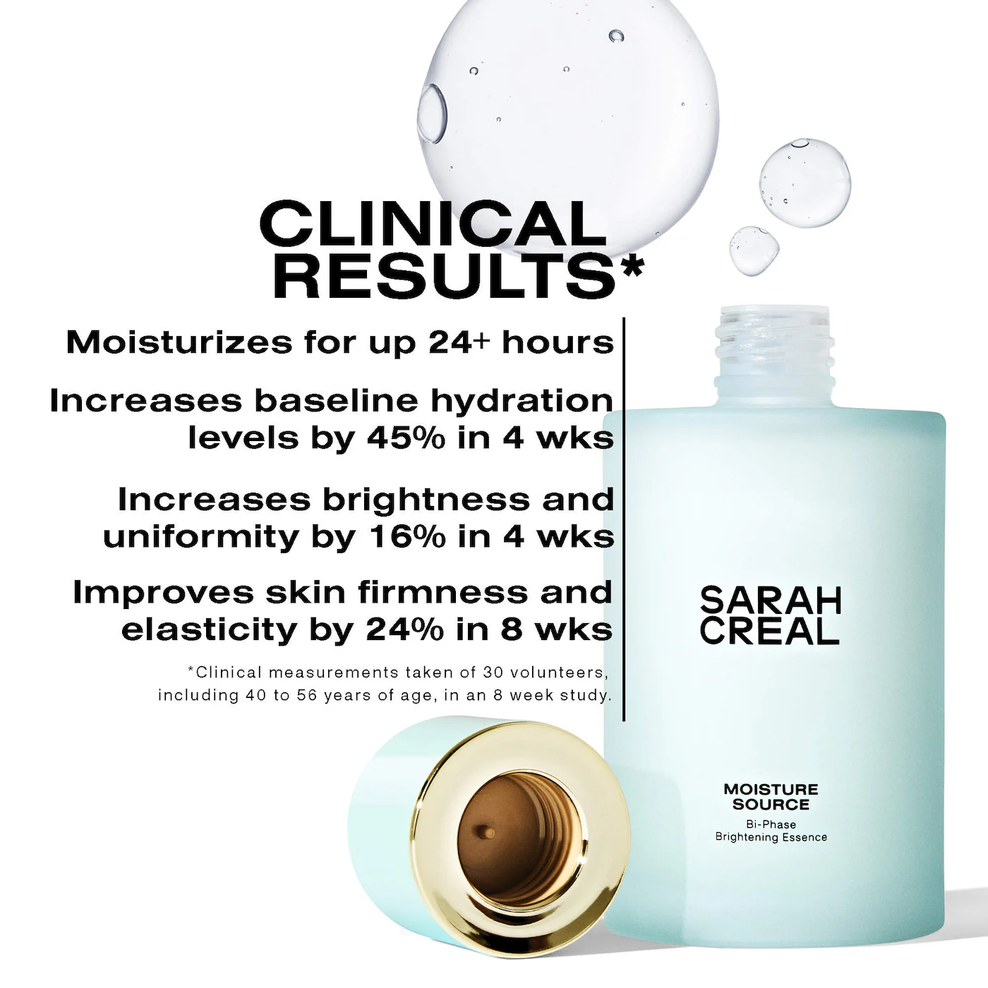 Qué es: Un hidratante líquido ligero de doble fase que ilumina visiblemente, reafirma, reduce las manchas oscuras y sella la hidratación hasta por más de 24 horas.