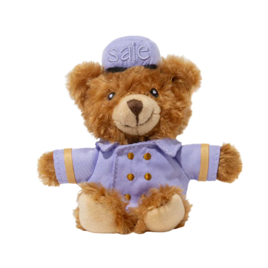 Qué es: ¡El bellhop favorito de Saie a tu servicio! Este llavero coleccionable en forma de oso, vestido con el icónico traje lilac de bellhop, puede engancharse a tu bolsa, llaves o a donde quieras agregar un toque de Saie.